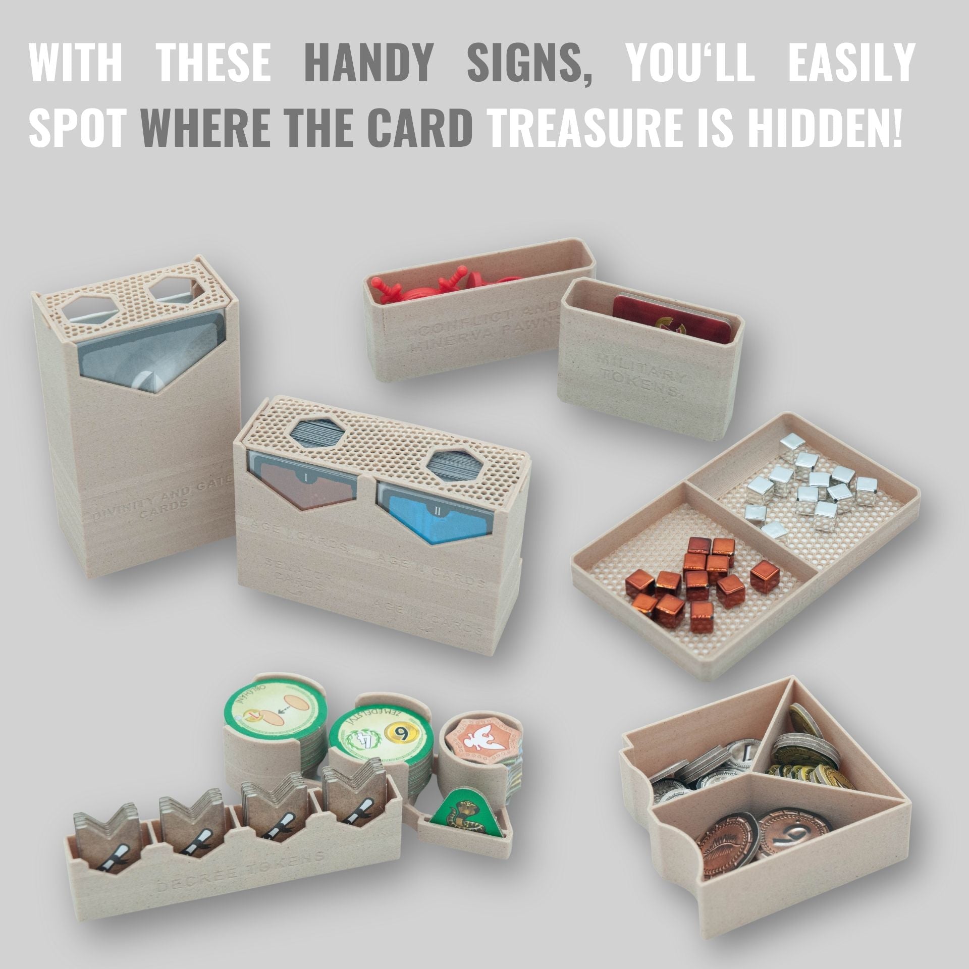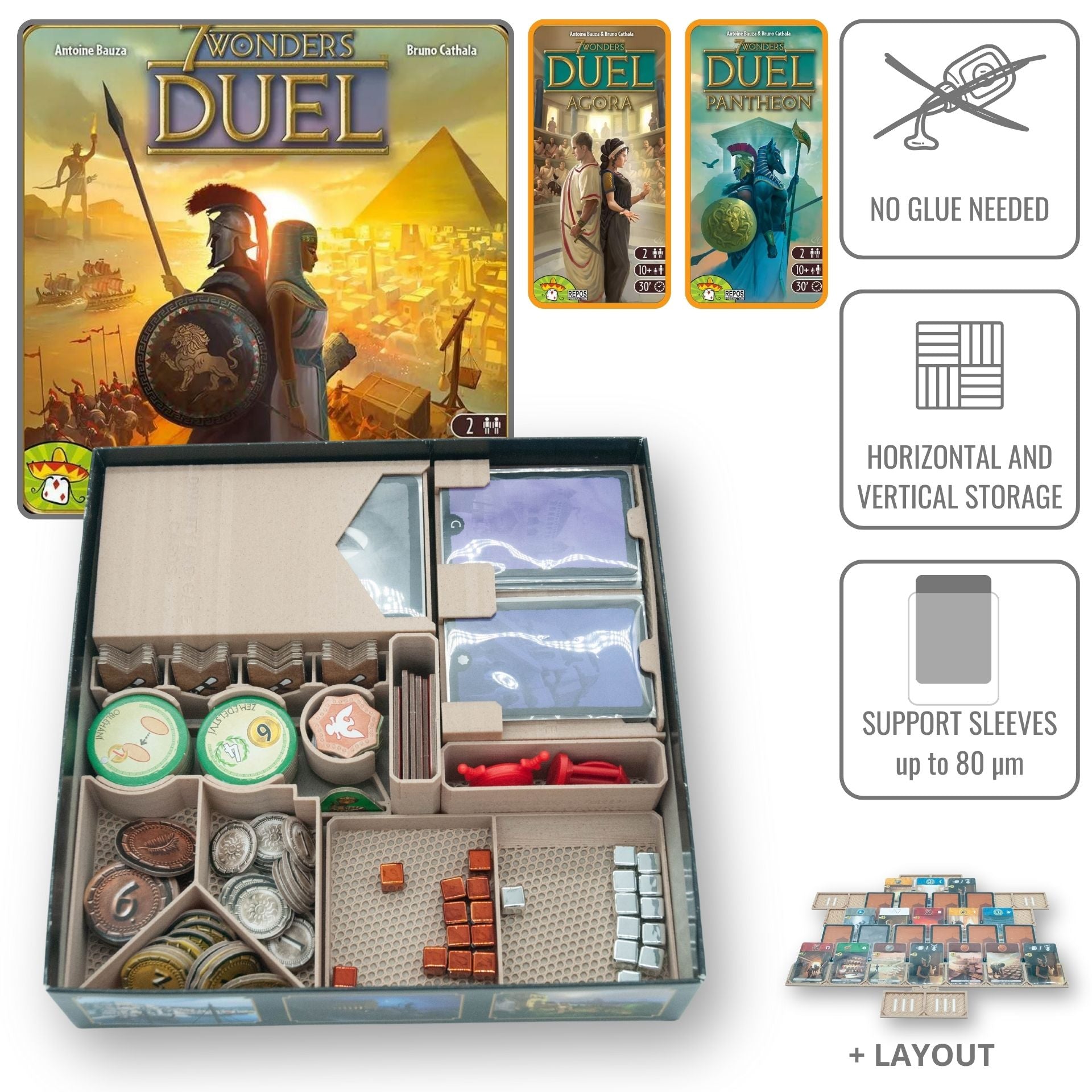 3D printed insert and layout for the board game 7 Wonders Duel (2015) including expansions Agora and Pantheon