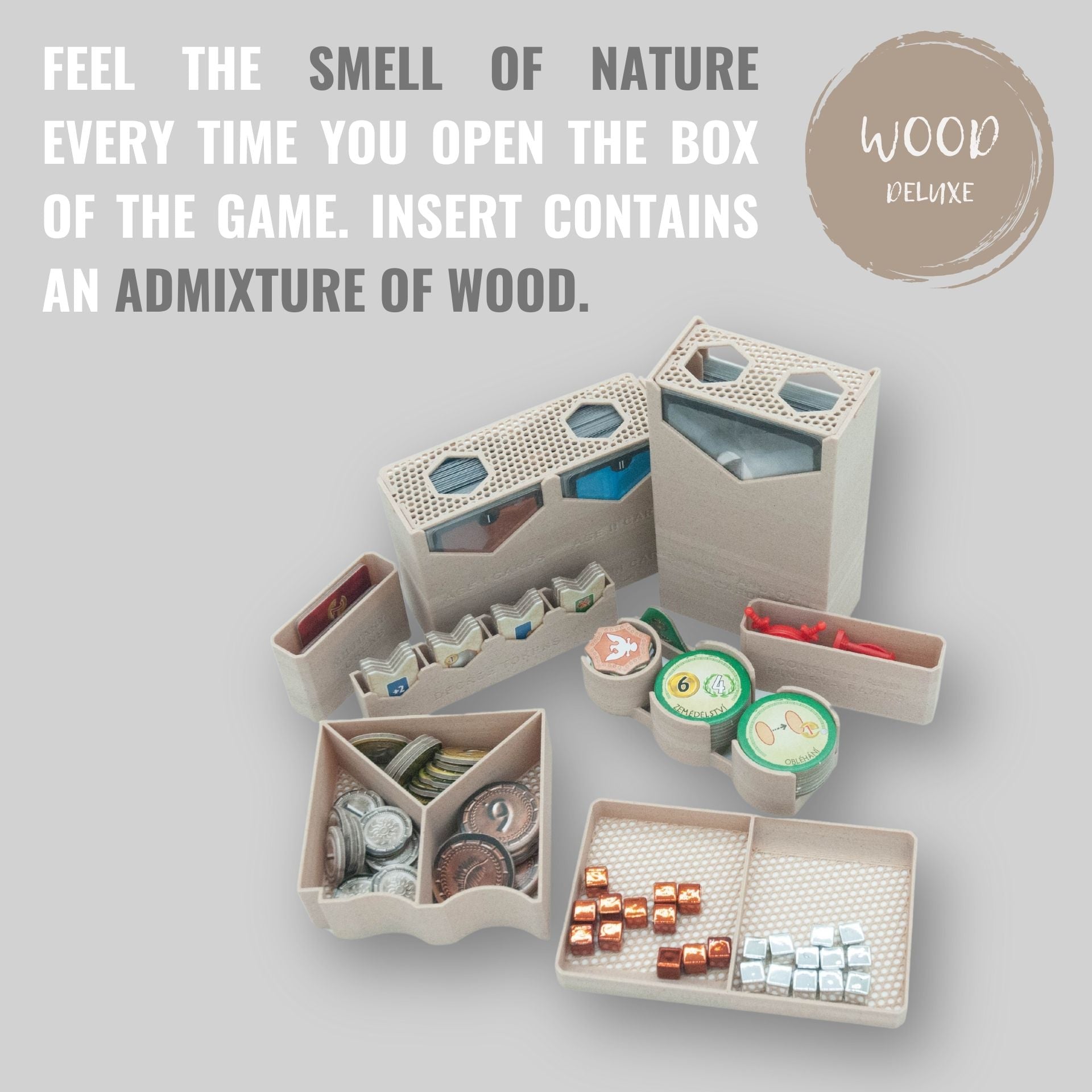 • Insert holds the base game and expansions Agora and Pantheon (stored in the box from the base game).