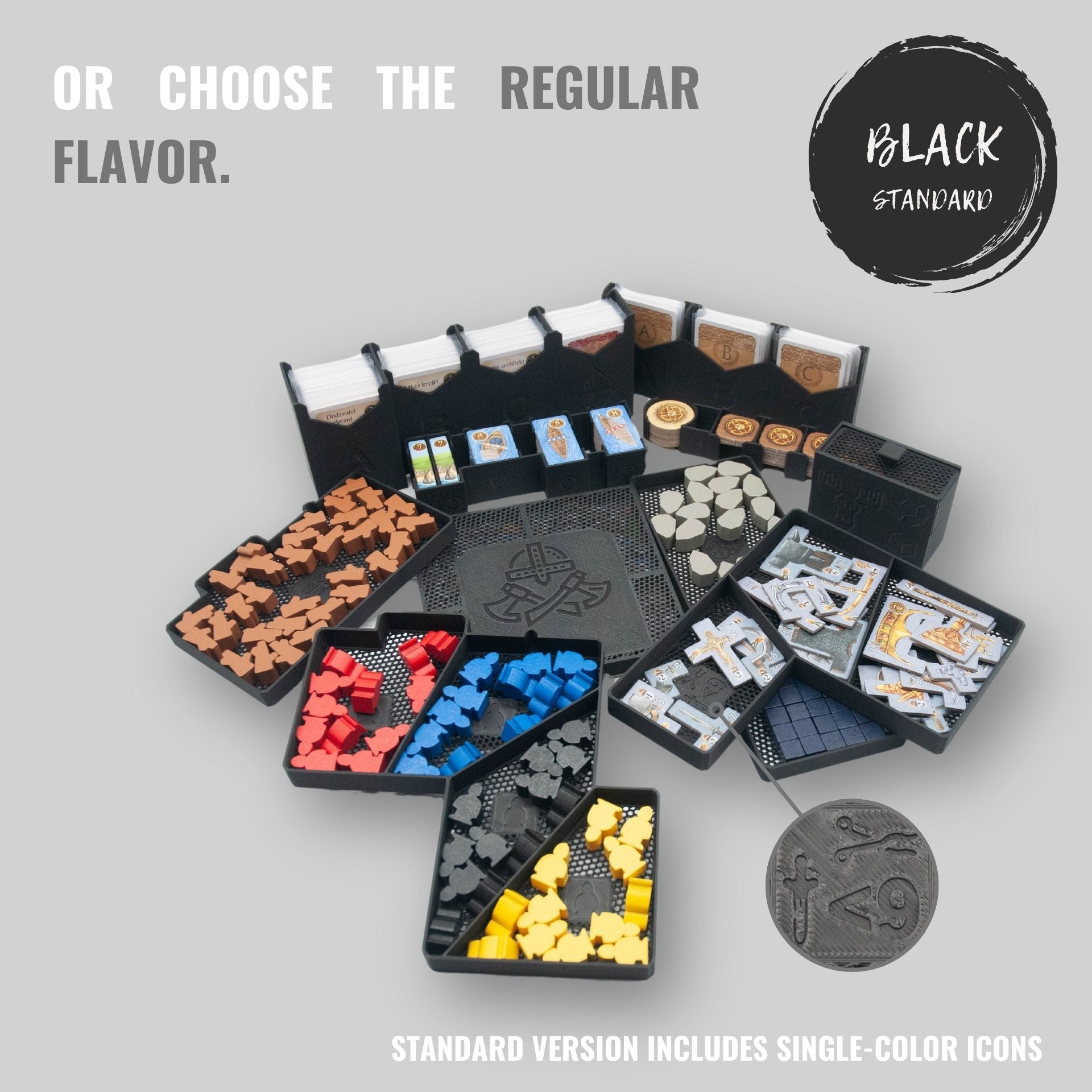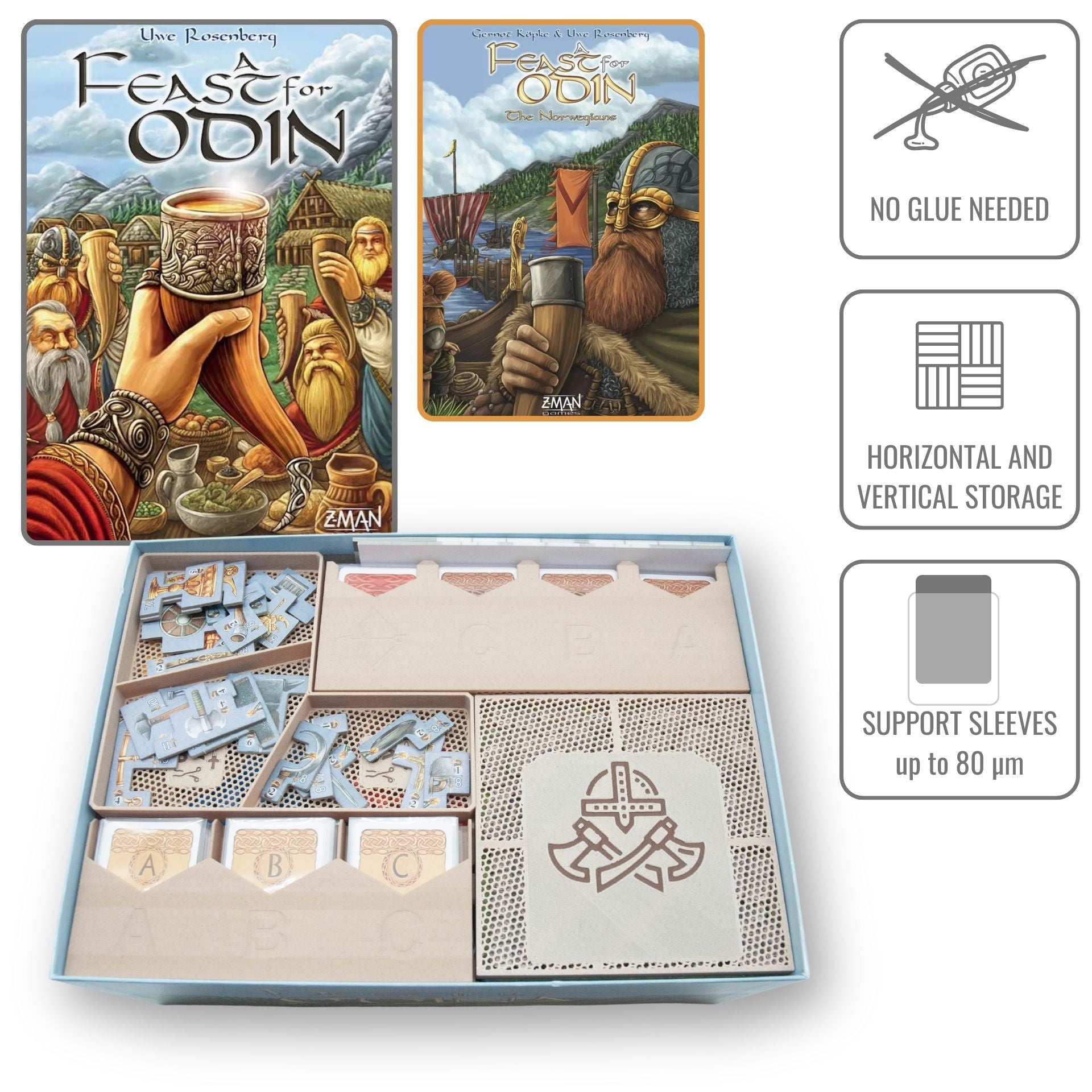 3D printed insert for board game A Feast for Odin (2016) including expansion The Norwegians and miniexpansions #1 and #2.
