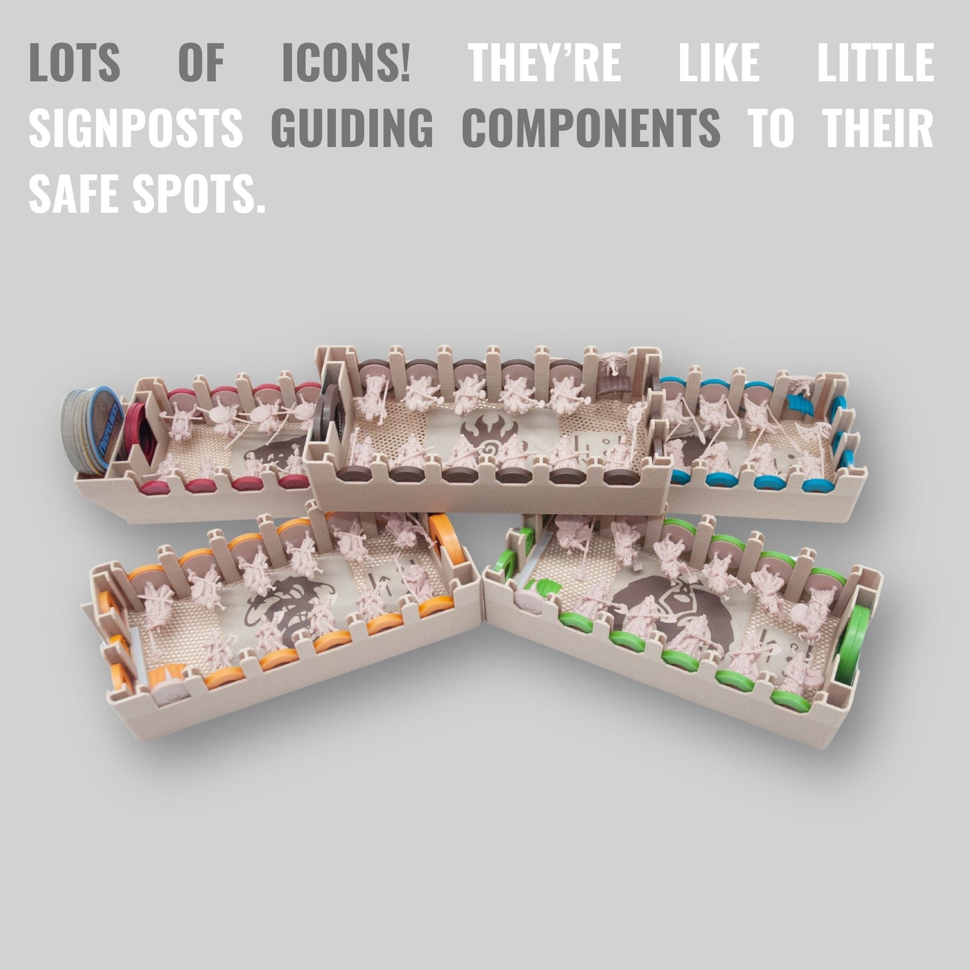 • Designed to fit the base game including the fifth player expansion, Gods of Asgard and Mystics of Midgard into one box from the base game. Everything can then be carried in just one box
