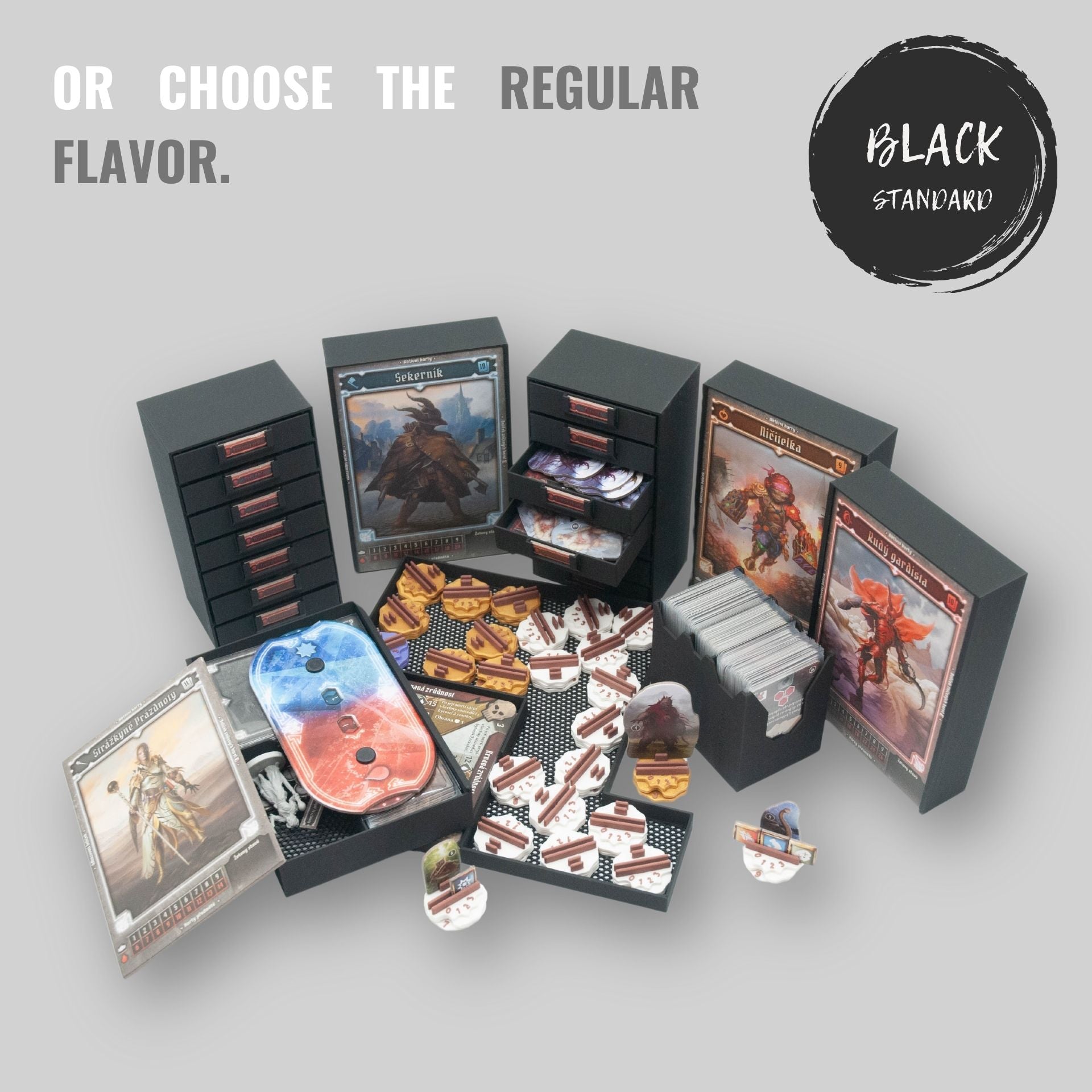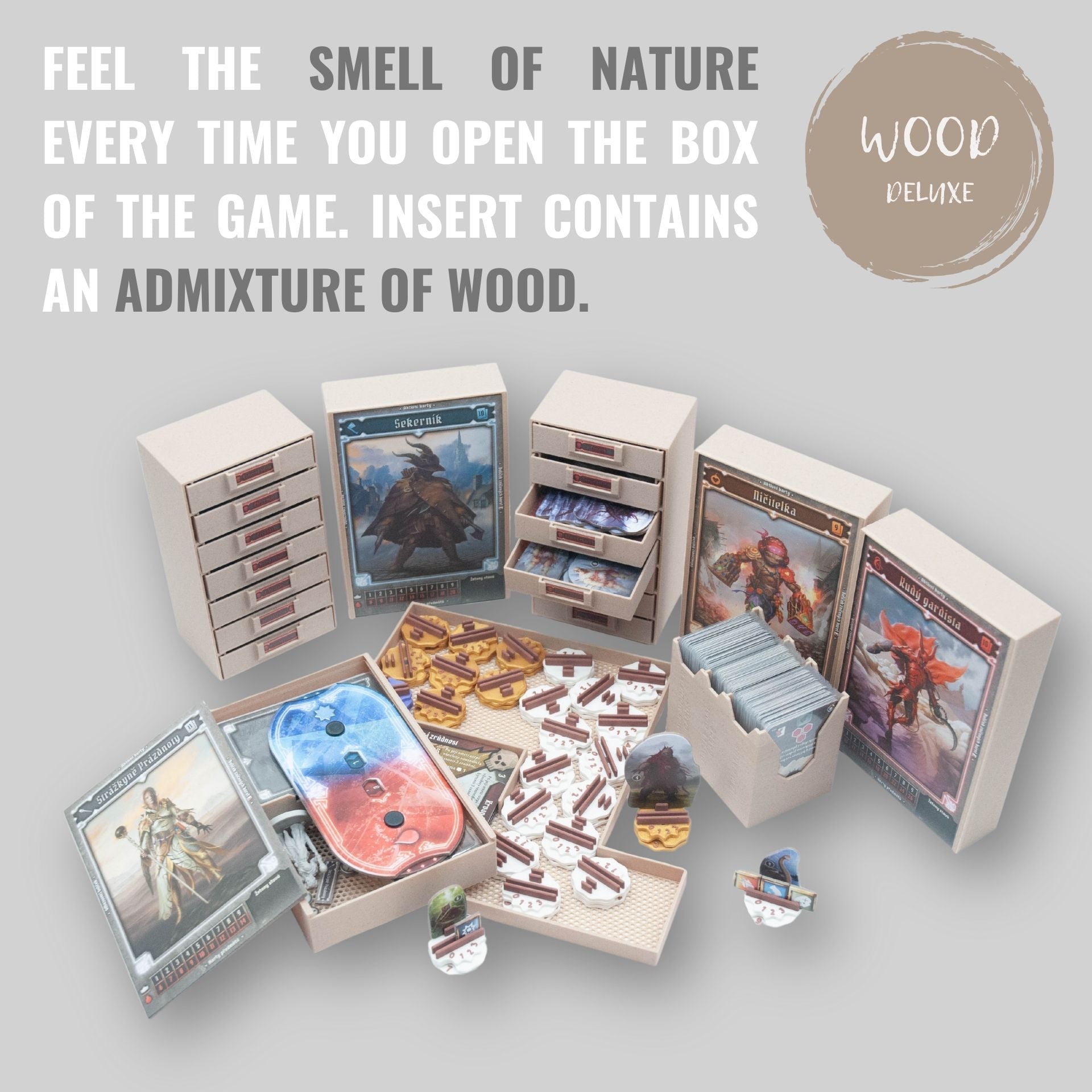 Inserts are also designed for storing sleeved cards, so it is recommended to provide the cards with sleeves to protect the cards from damage and contamination. We recommend the following amount of sleeves for this game: