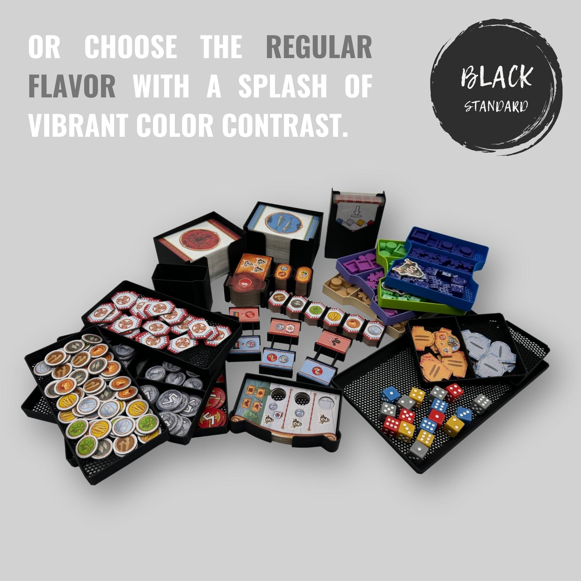 - Much of the components can also be used during play, such as the dice tray, card box, or token organizers to speed up setup.