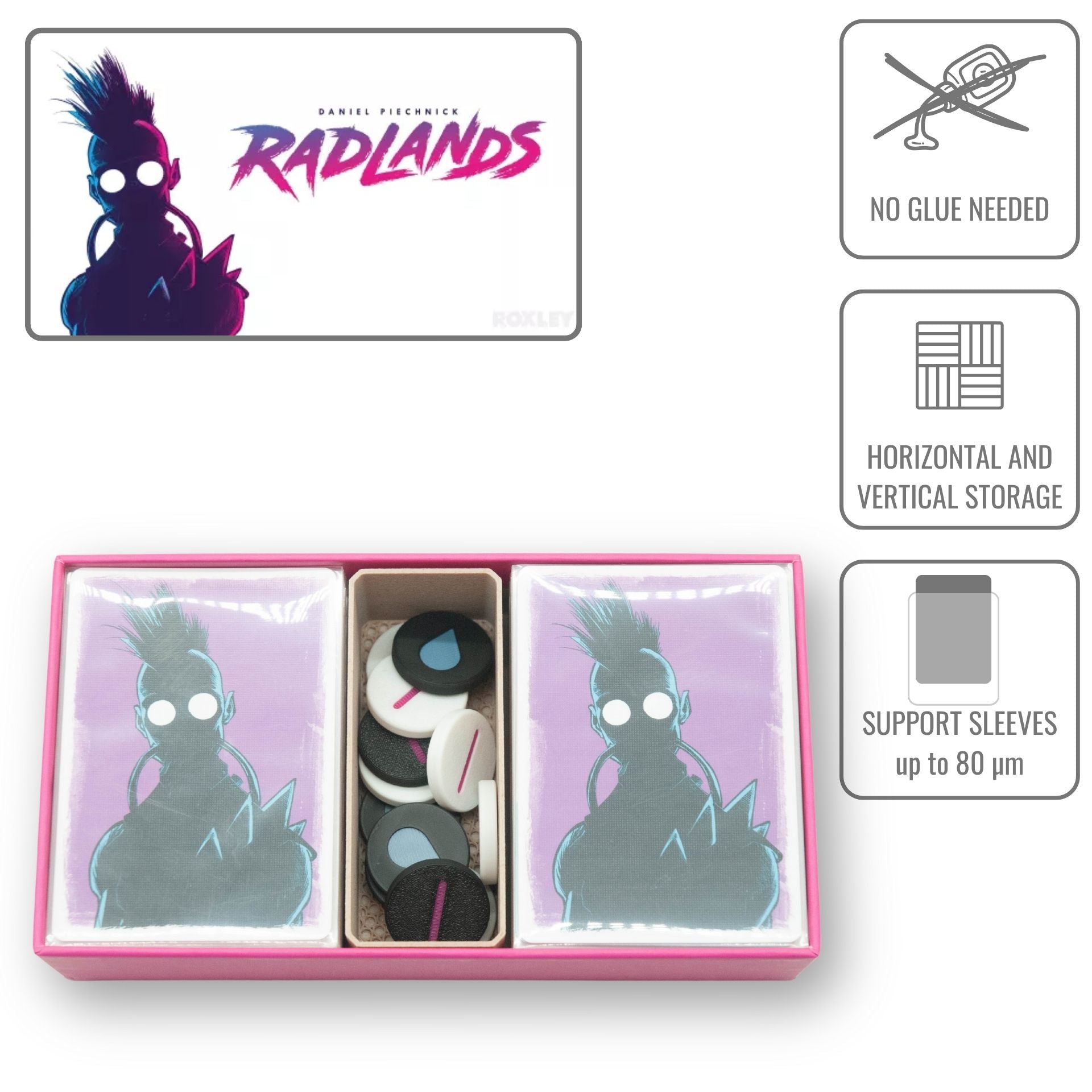 - 1x box dividing the space between the cards (serves as storage for 3D tokens)