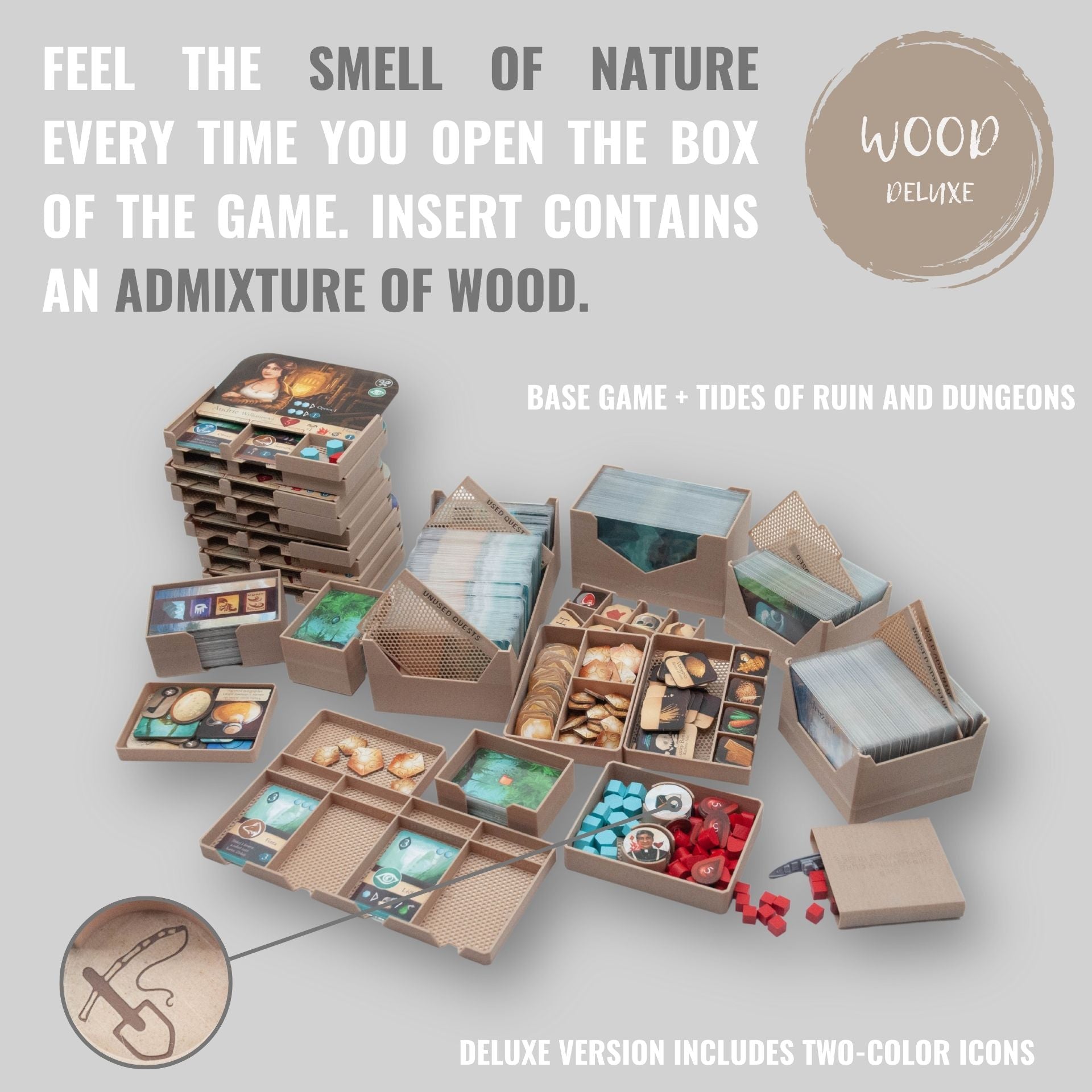3D printed insert for board game Sleeping Gods (2021) including expansions Dungeons and Tides of Ruin.