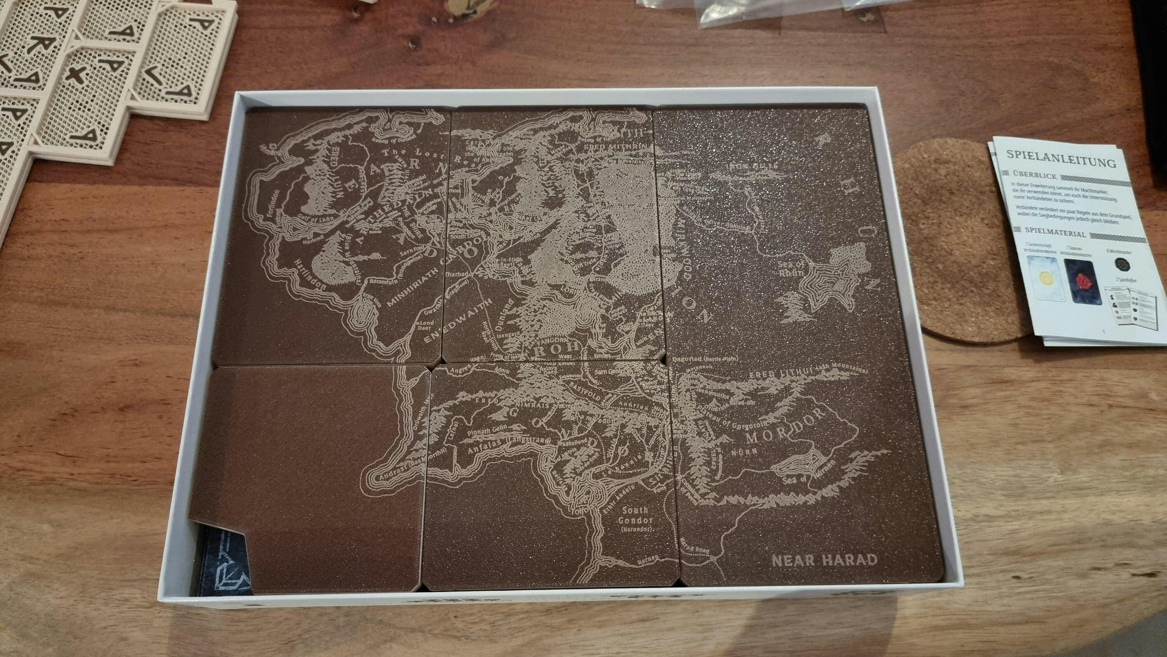 Nádherný a funkčný insert, ktorý výrazne skracuje dobu prípravy hry. "Drevená" verzia vyzerá na stole (a vďaka vypálenému artu z hry aj v krabici) naozaj skvele. Uloženie do krabice je vymyslené naozaj dômyselne, čo muselo byť s ohľadom na nepravidelné veľkosti mapových dielikov celkom výzva. Všetko ale perfektne sedí na milimeter presne a je radosť hru po partií baliť.
