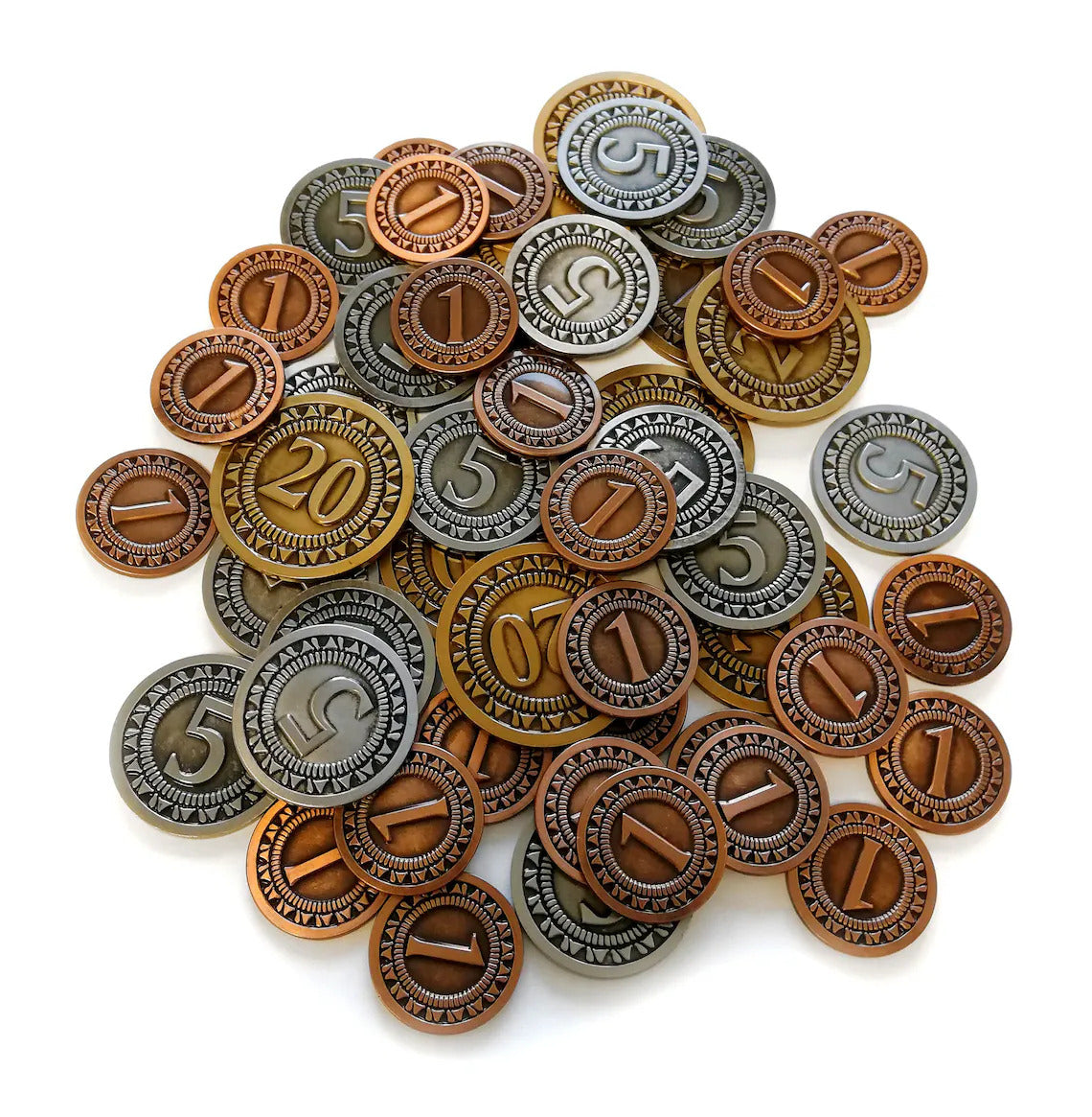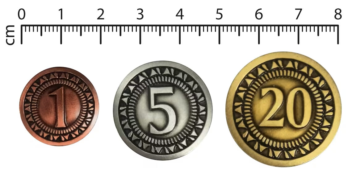 Dodejte své herní kolekci šmrnc s touto sadou kovových mincí! Perfektní doplněk pro všechny nadšence do deskových her, kteří oceňují kvalitu a detail.